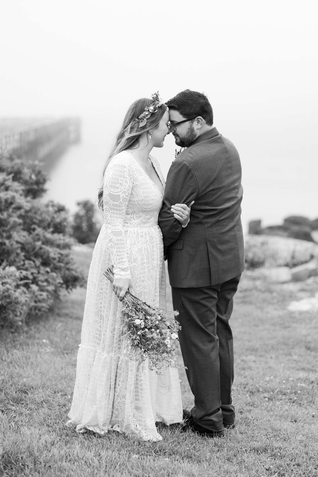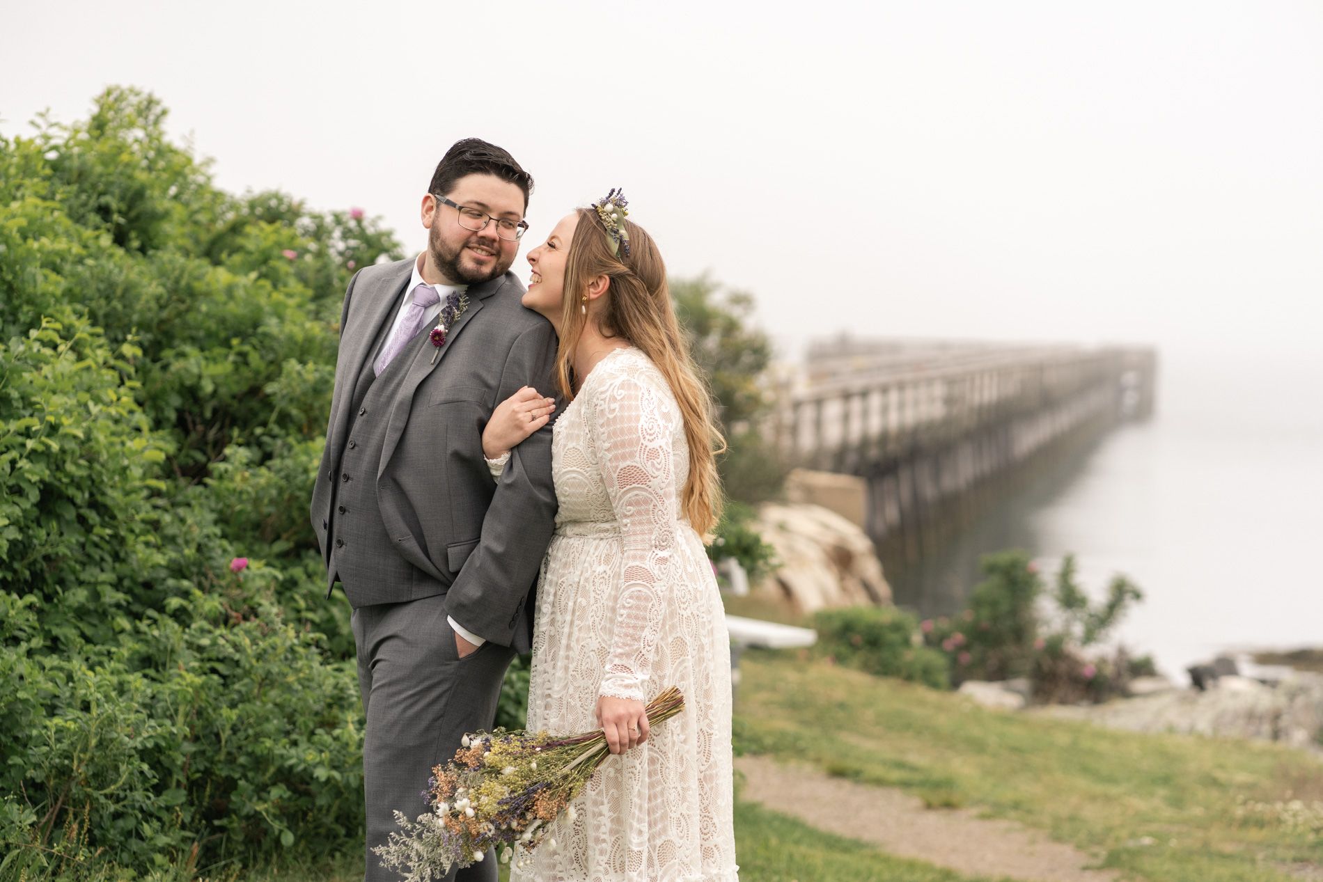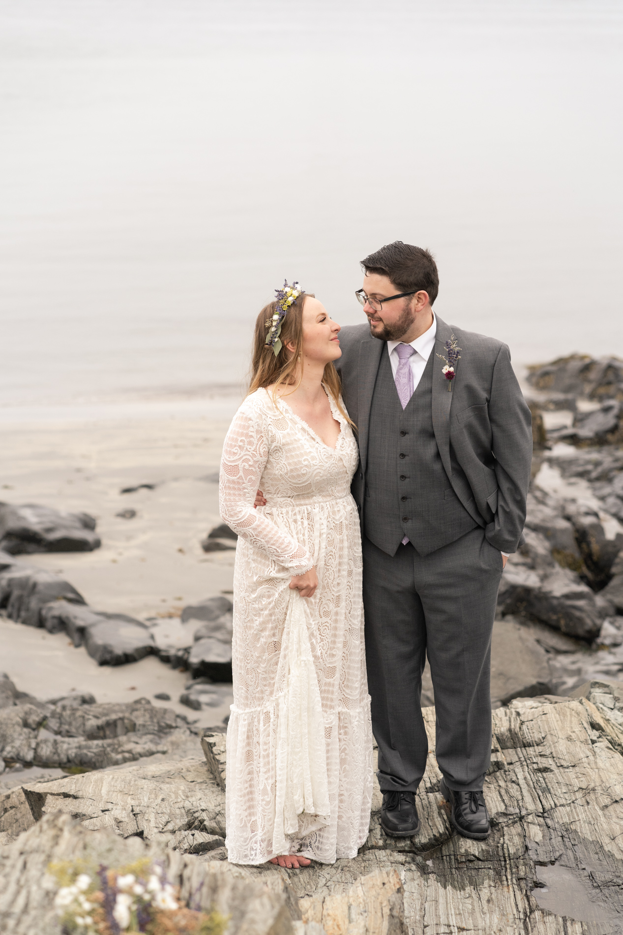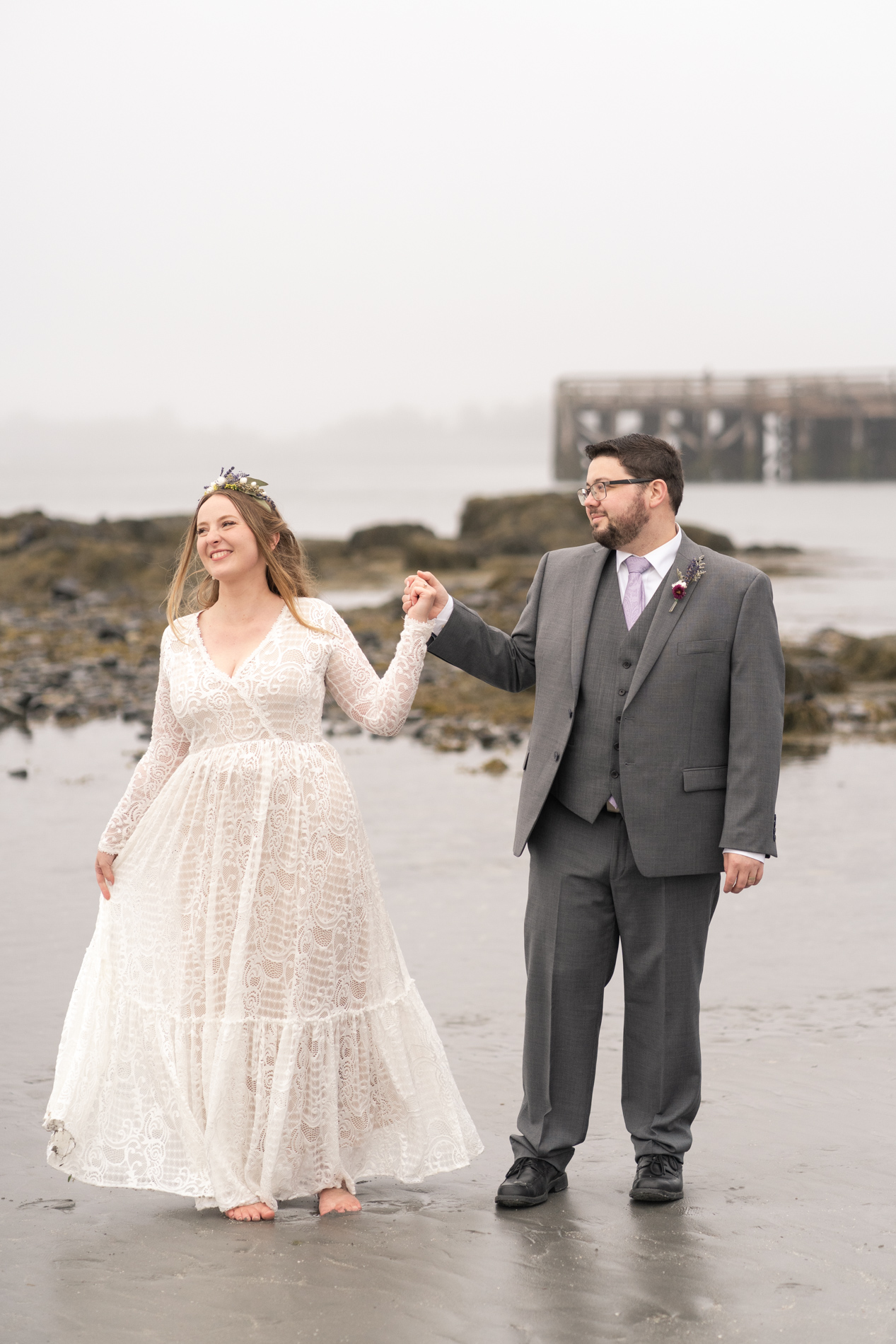 We photographed at Fort Foster with its varied terrain, beaches, rocks, and pier. You can’t go wrong with this spot! We couldn’t have predicted the fog, but I happen to love the the little something extra in the atmosphere of the images.