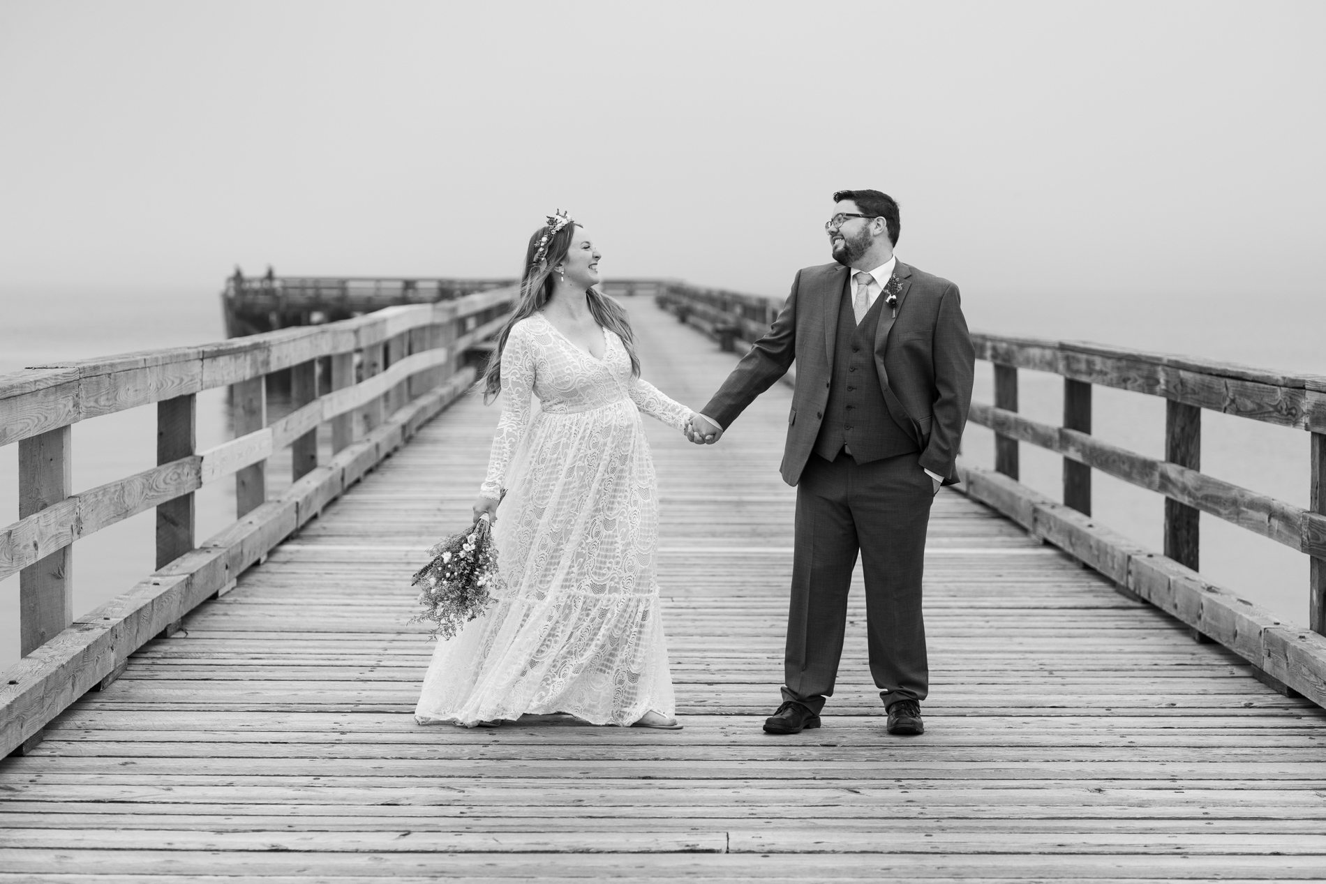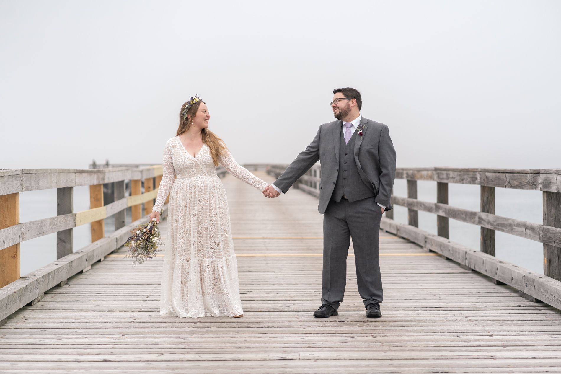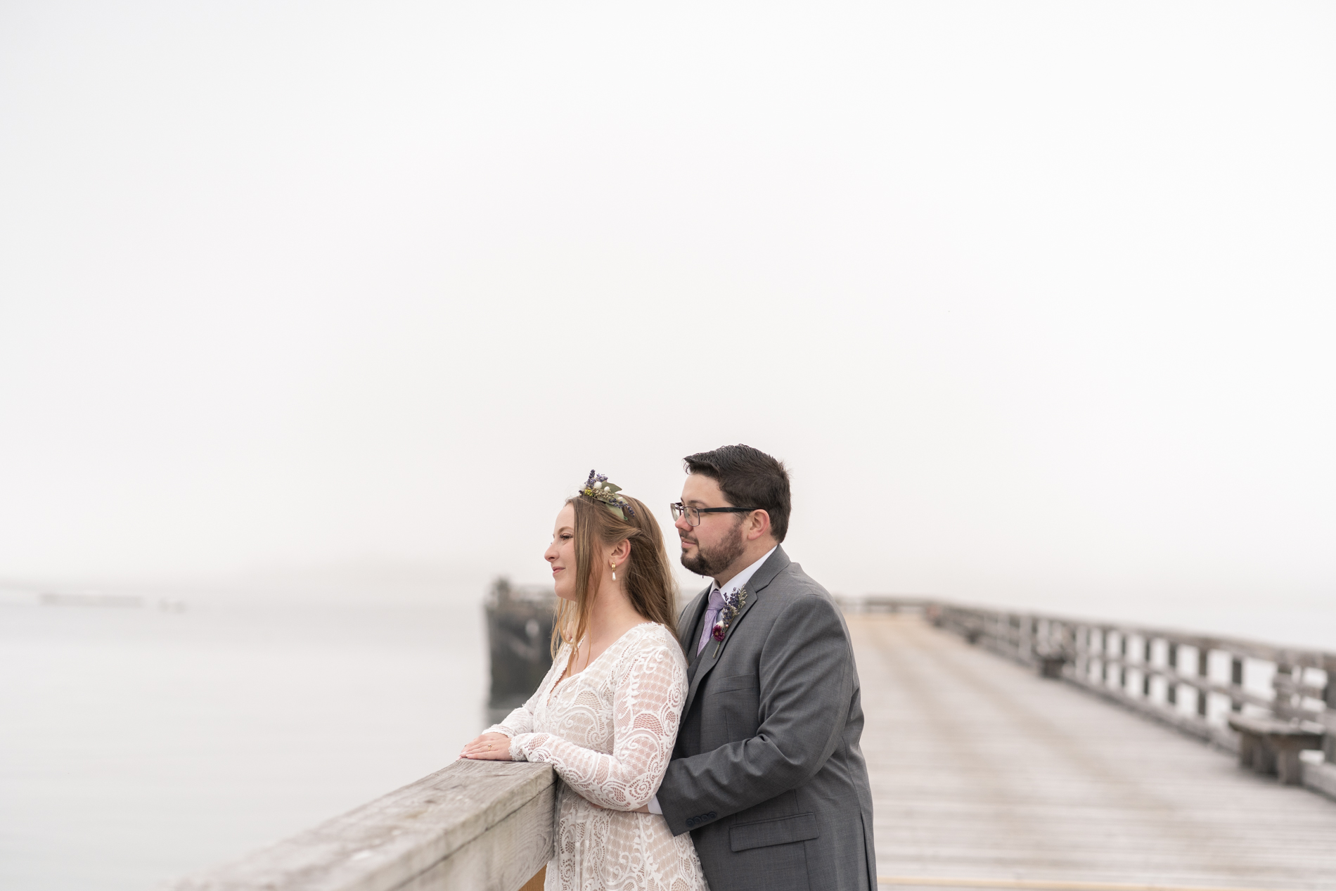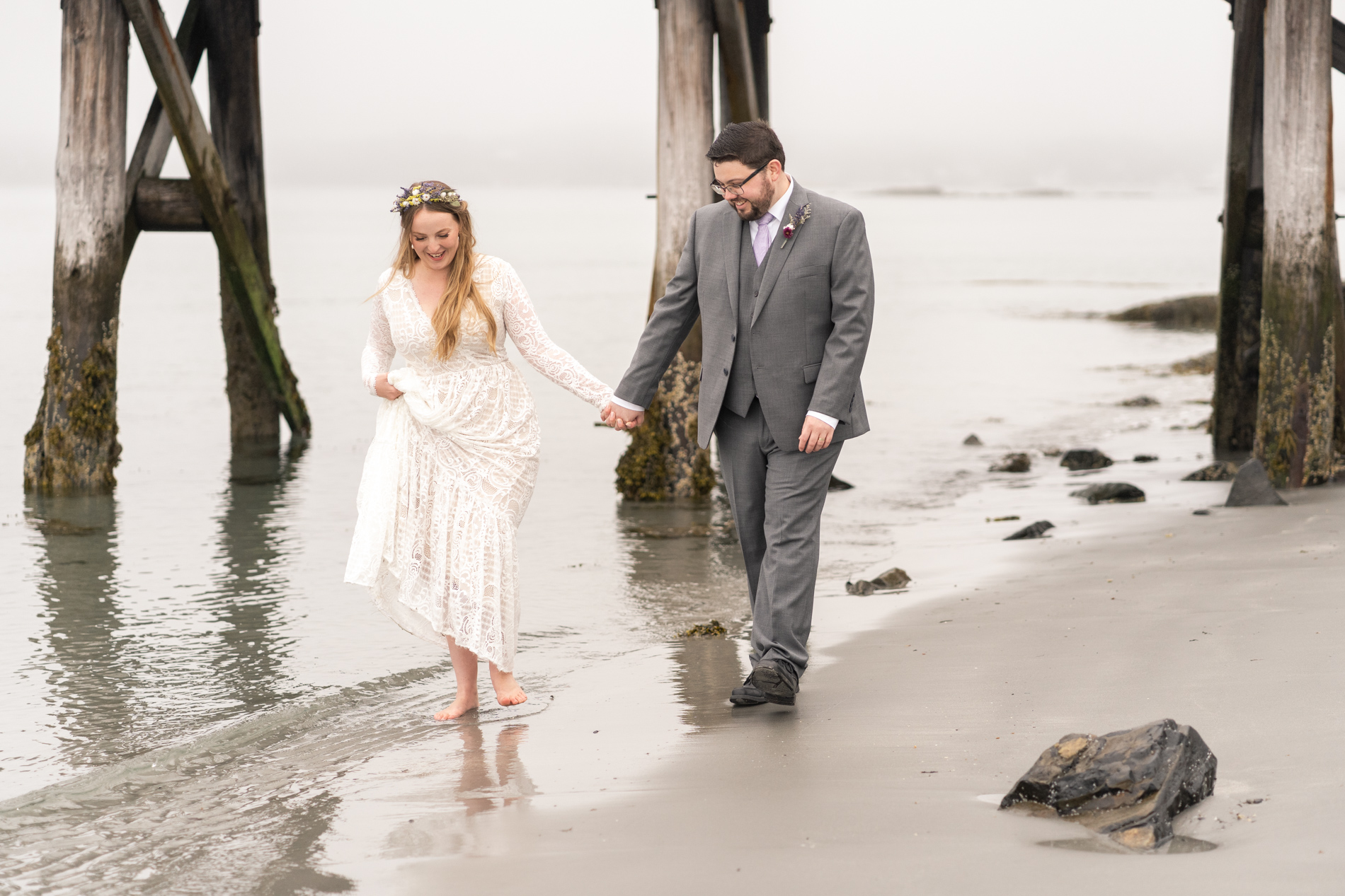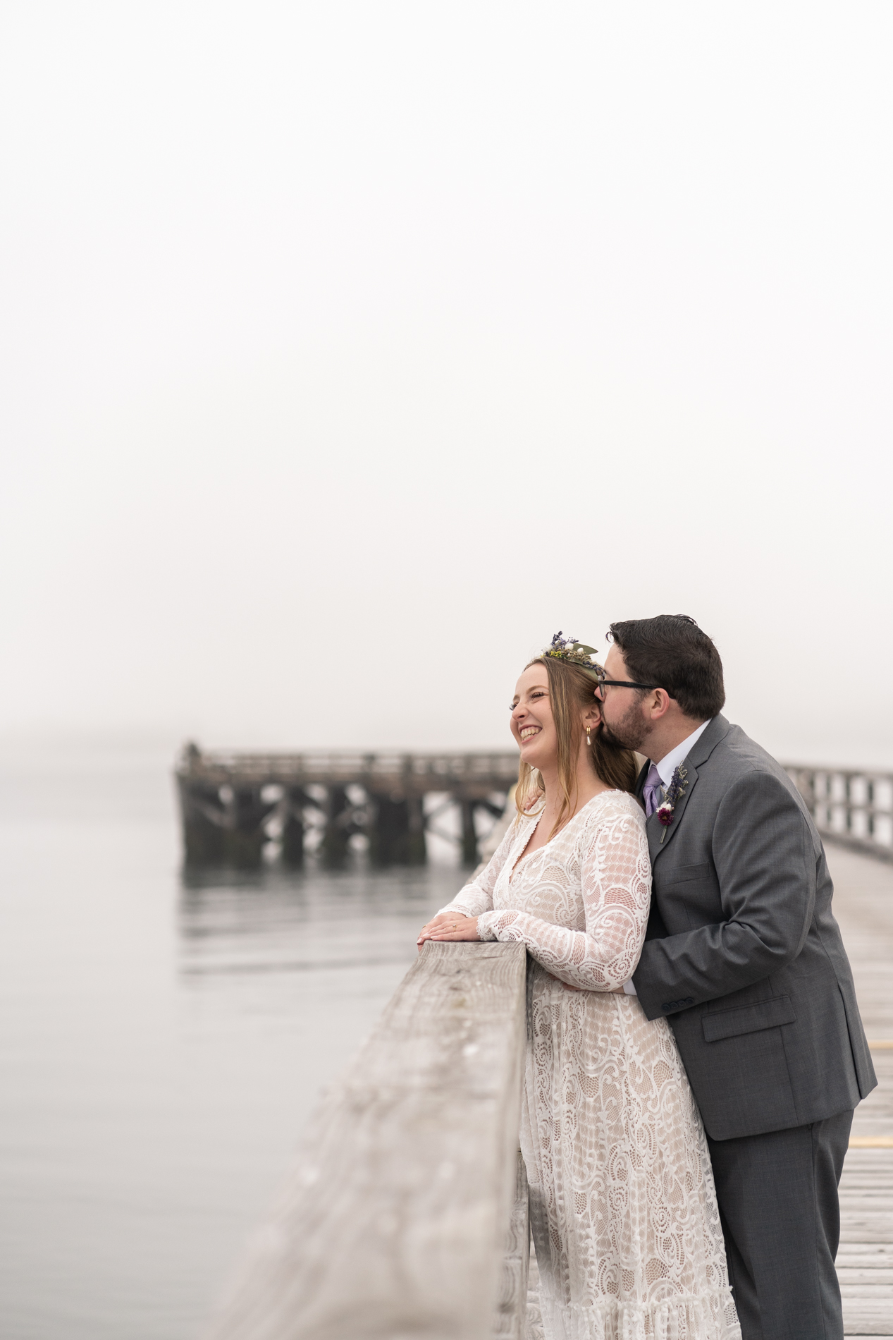 We photographed at Fort Foster with its varied terrain, beaches, rocks, and pier. You can’t go wrong with this spot! We couldn’t have predicted the fog, but I happen to love the the little something extra in the atmosphere of the images.