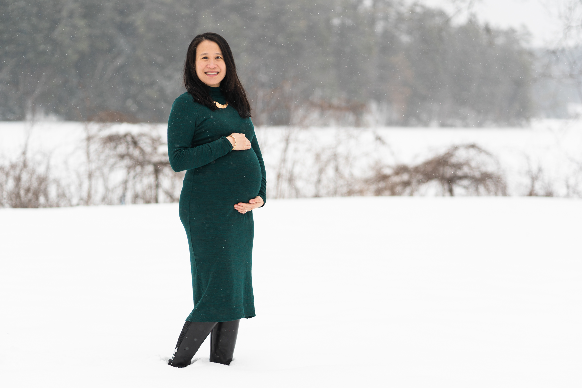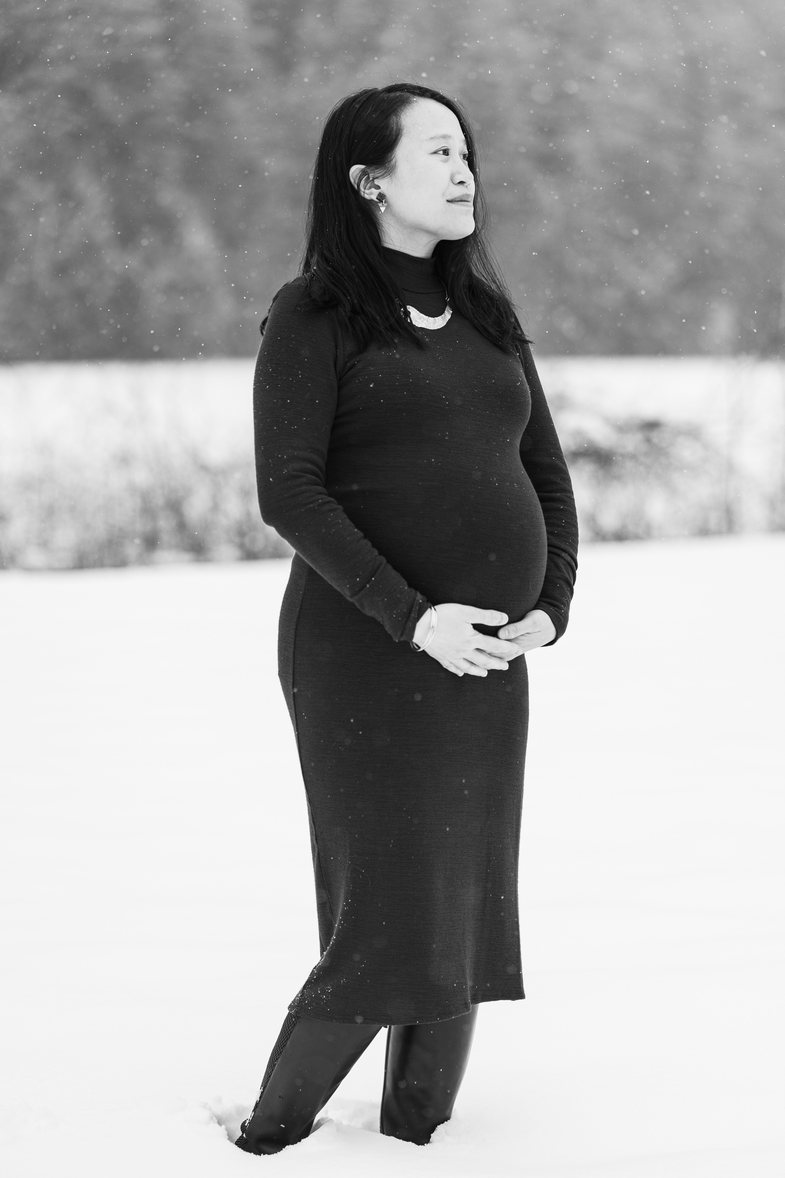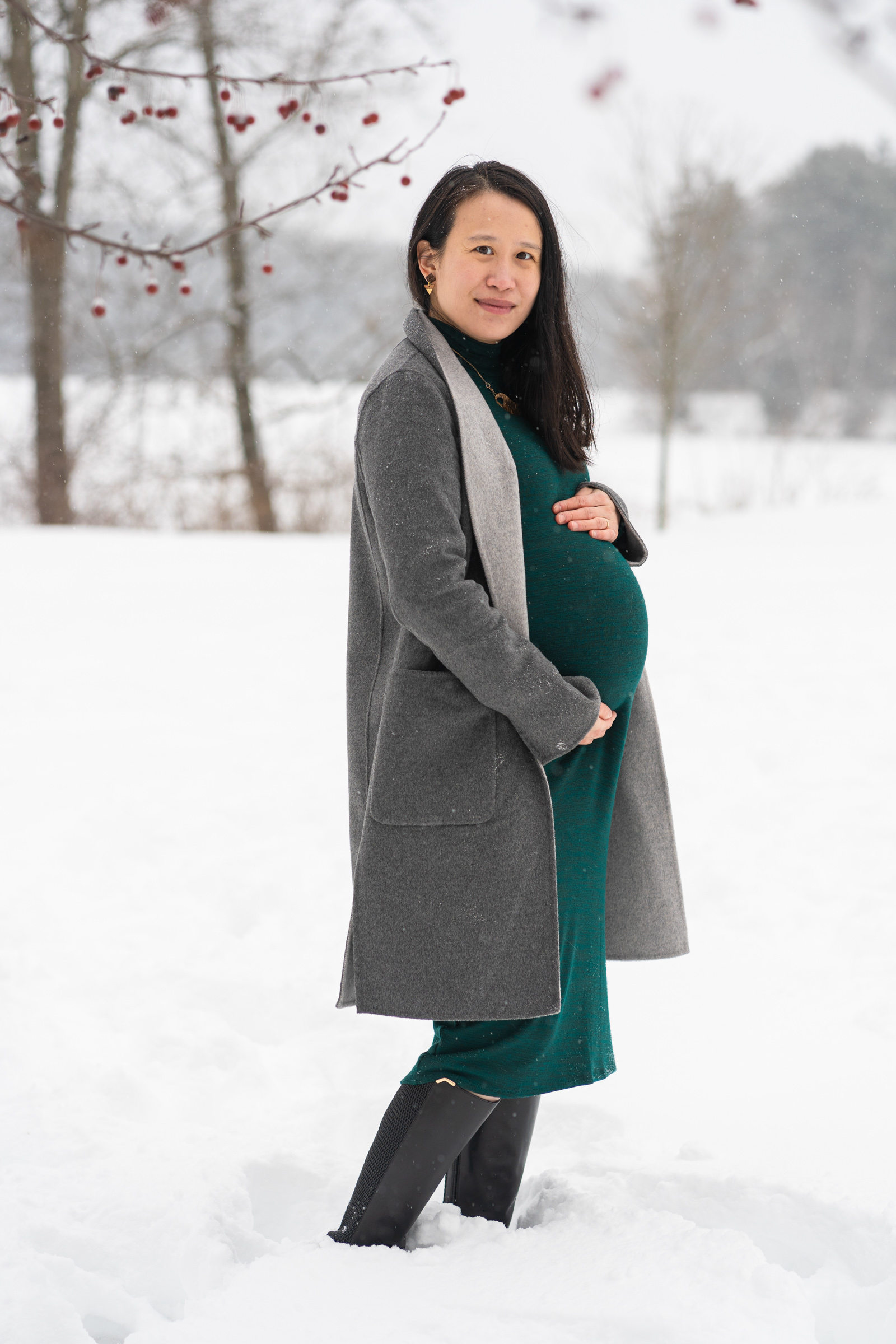 Variability of New England weather can add to the story of your photo session, sometimes creating a challenge, though, rain and snow can add an element of drama that can make the images more memorable. The weather may determine how we dress, how we pose and move, and even where the shoot can take place. I’m impressed each time I have a couple or a family who will venture into the elements with me, especially soon-to-be parents! This couple willingly trudged through ankle-deep snow at Foley Park in Hanover, which overlooks the Connecticut River. Nervous to keep them out in the cold for too long, we created a variety of special portraits in a short amount of time to keep everyone comfortable.