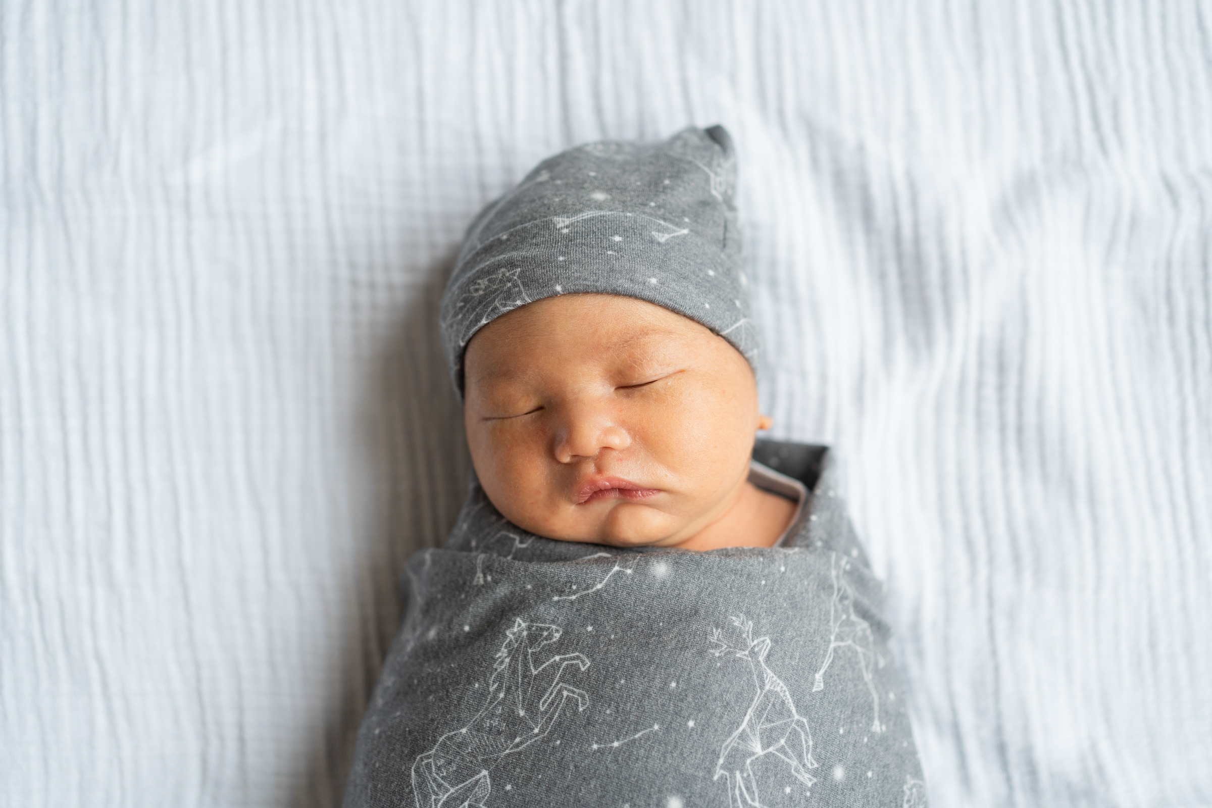 For newborn session styling, my advice is to keep it simple and use swaddles and blankets with neutral tones. The gentle tones make the images feel natural, light-filled and warm. I follow baby-led posing, to capture the newborn in their already-adorable natural state.