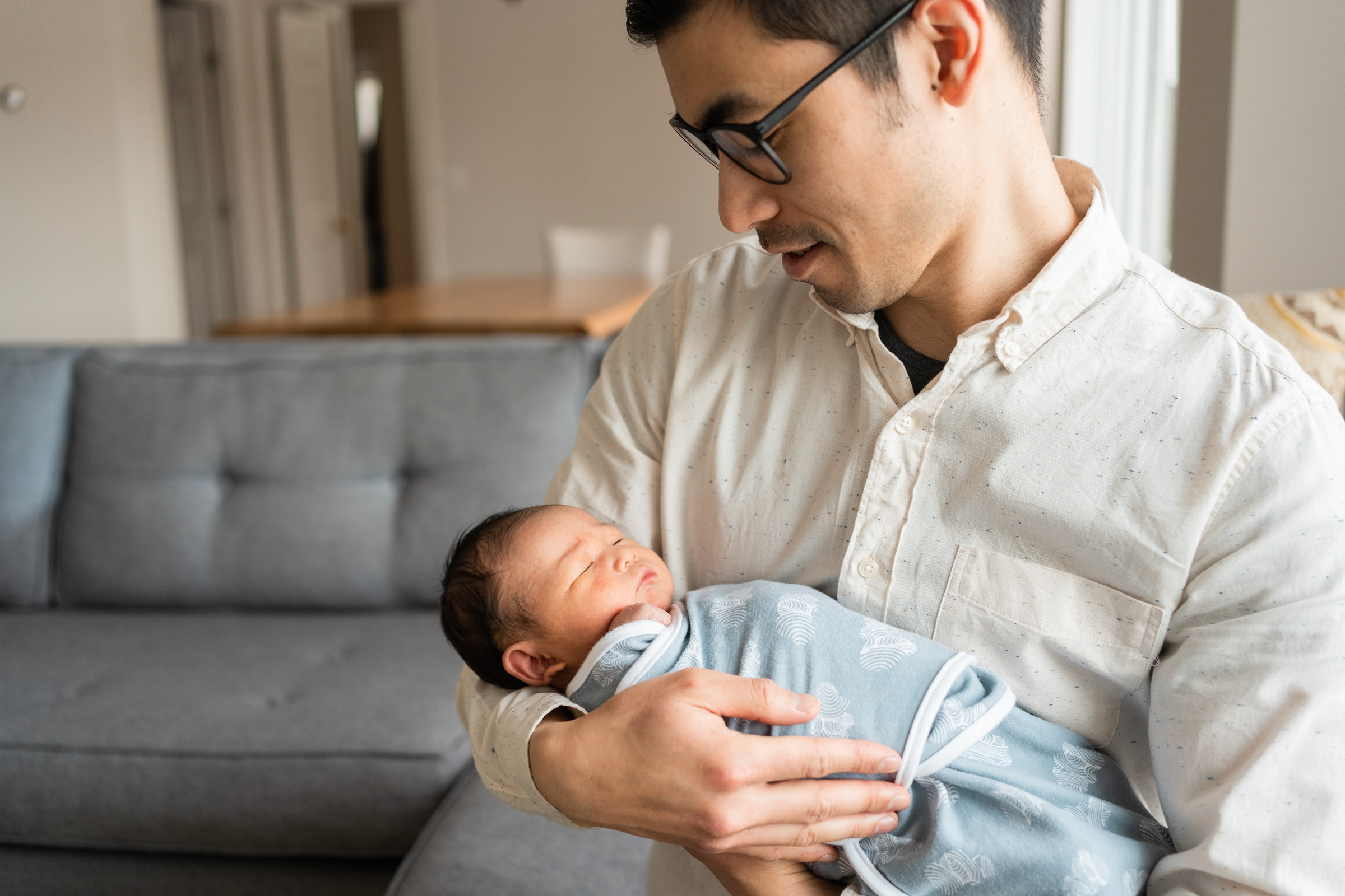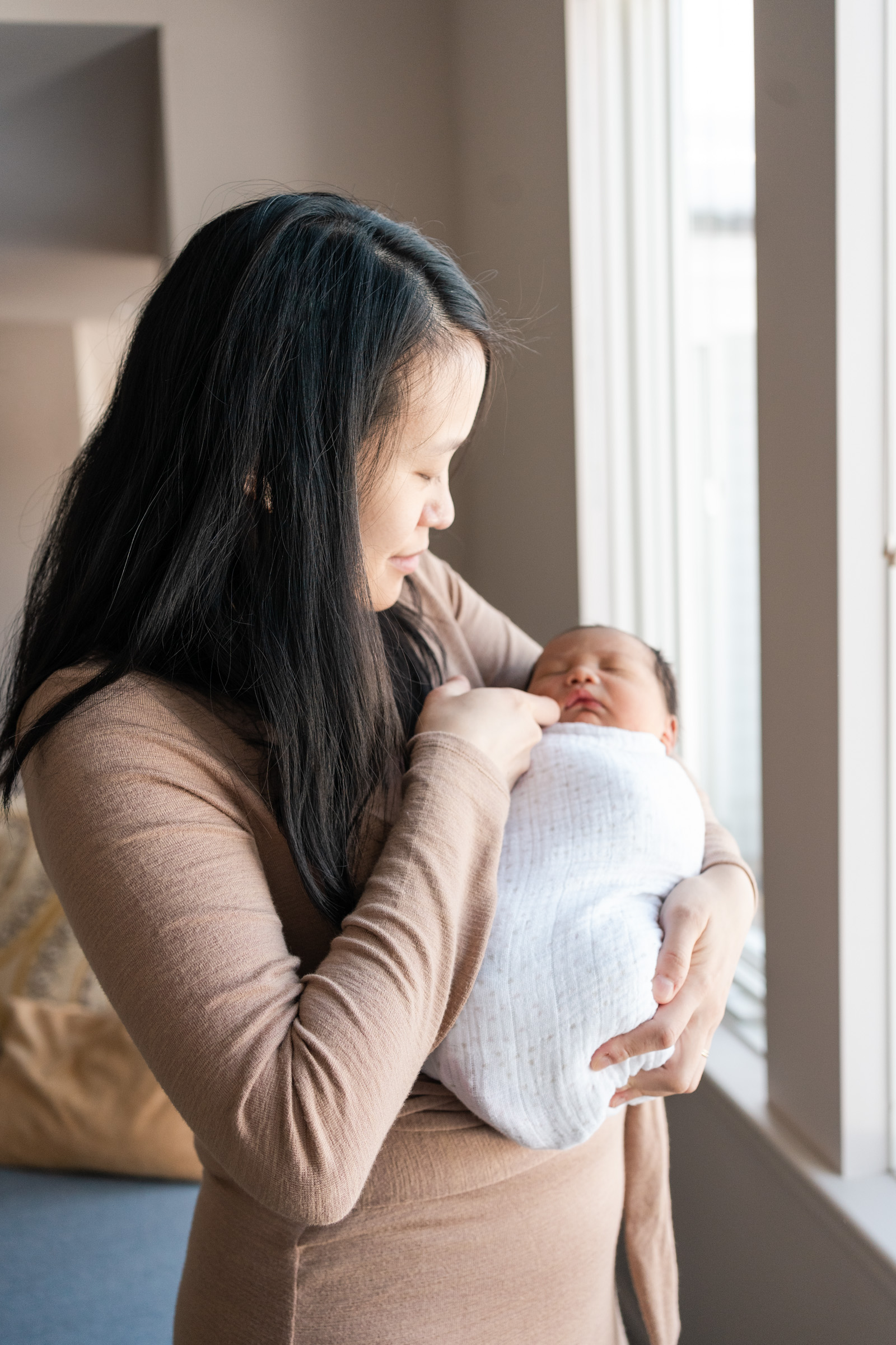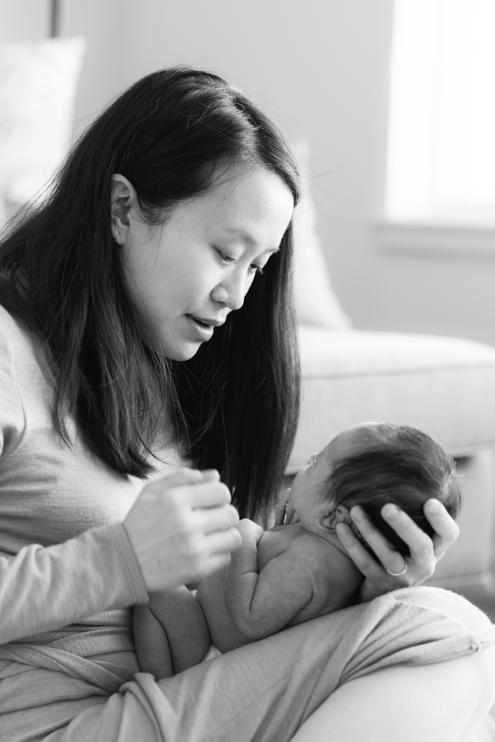 Regardless of the time of the year, I always suggest the newborn session be held inside the home. Beside convenience and comfort, the in-home newborn session tells the story of the intimate first days at home with a new baby at home. Soft window light, cozy neutrals, and lots of family connection are what make these sessions so sweet.