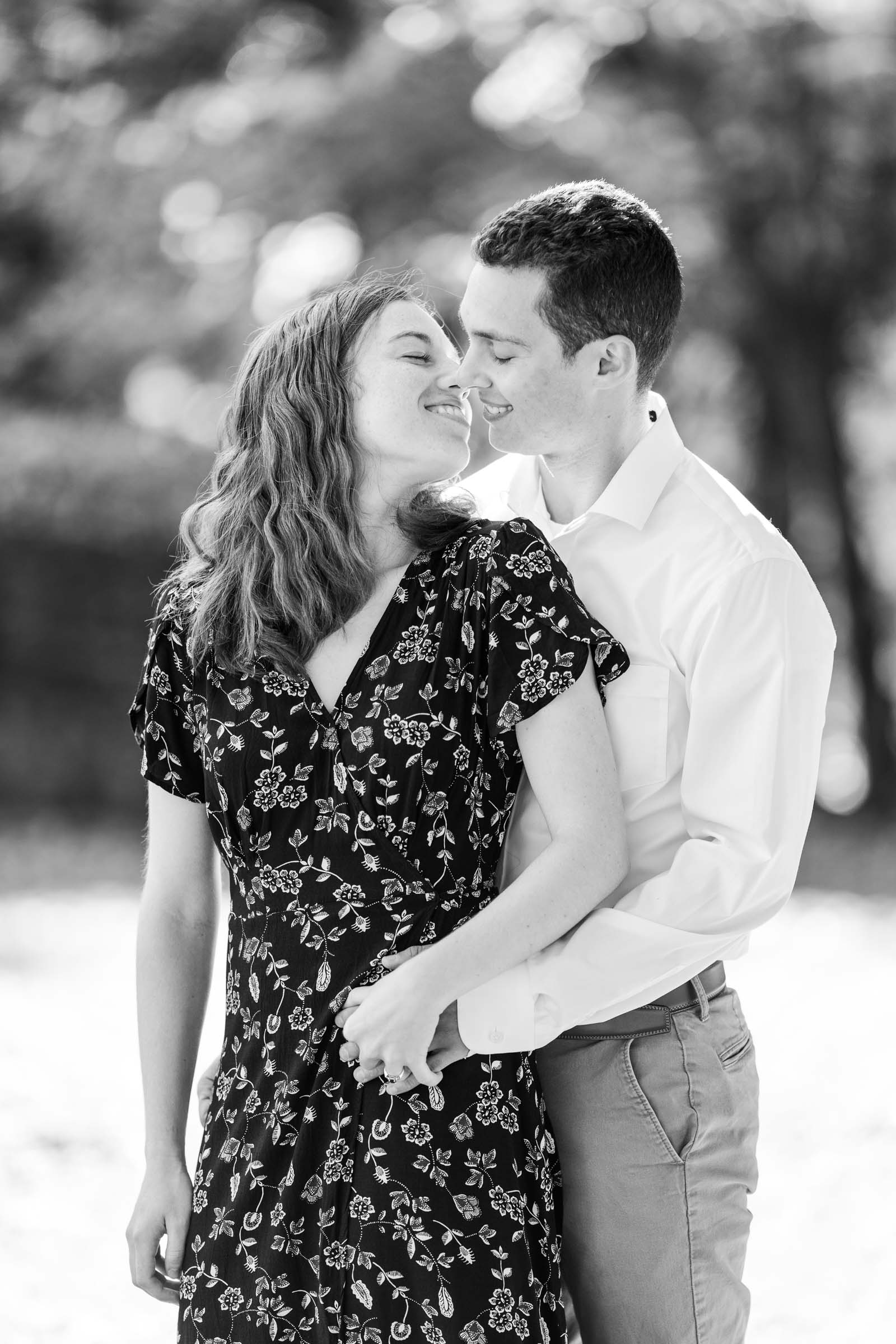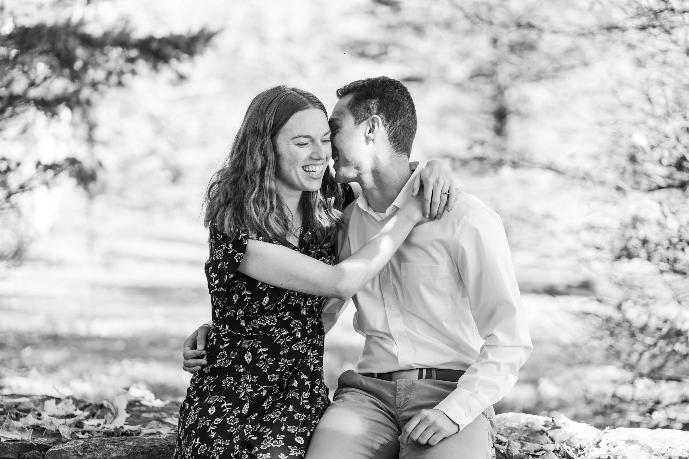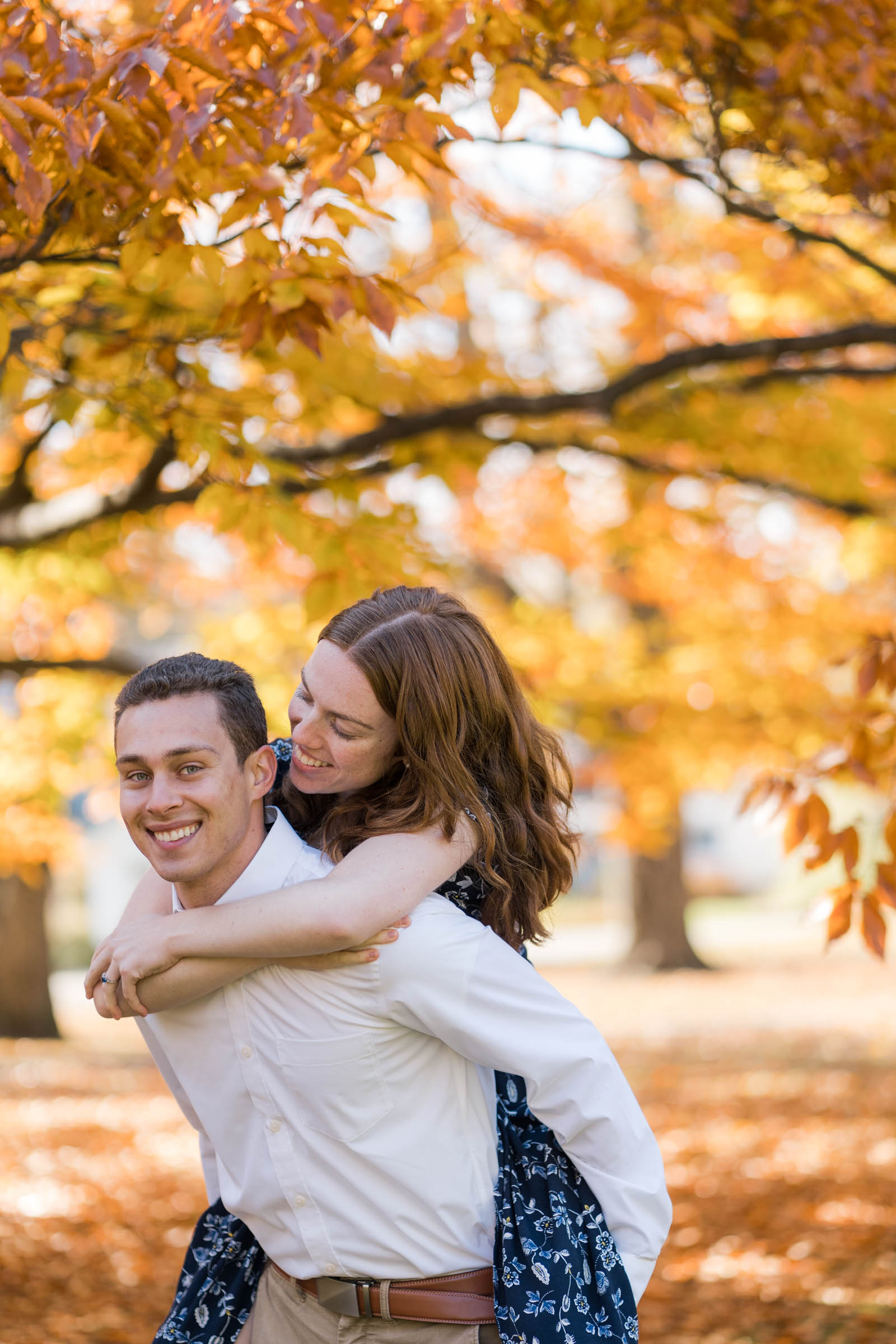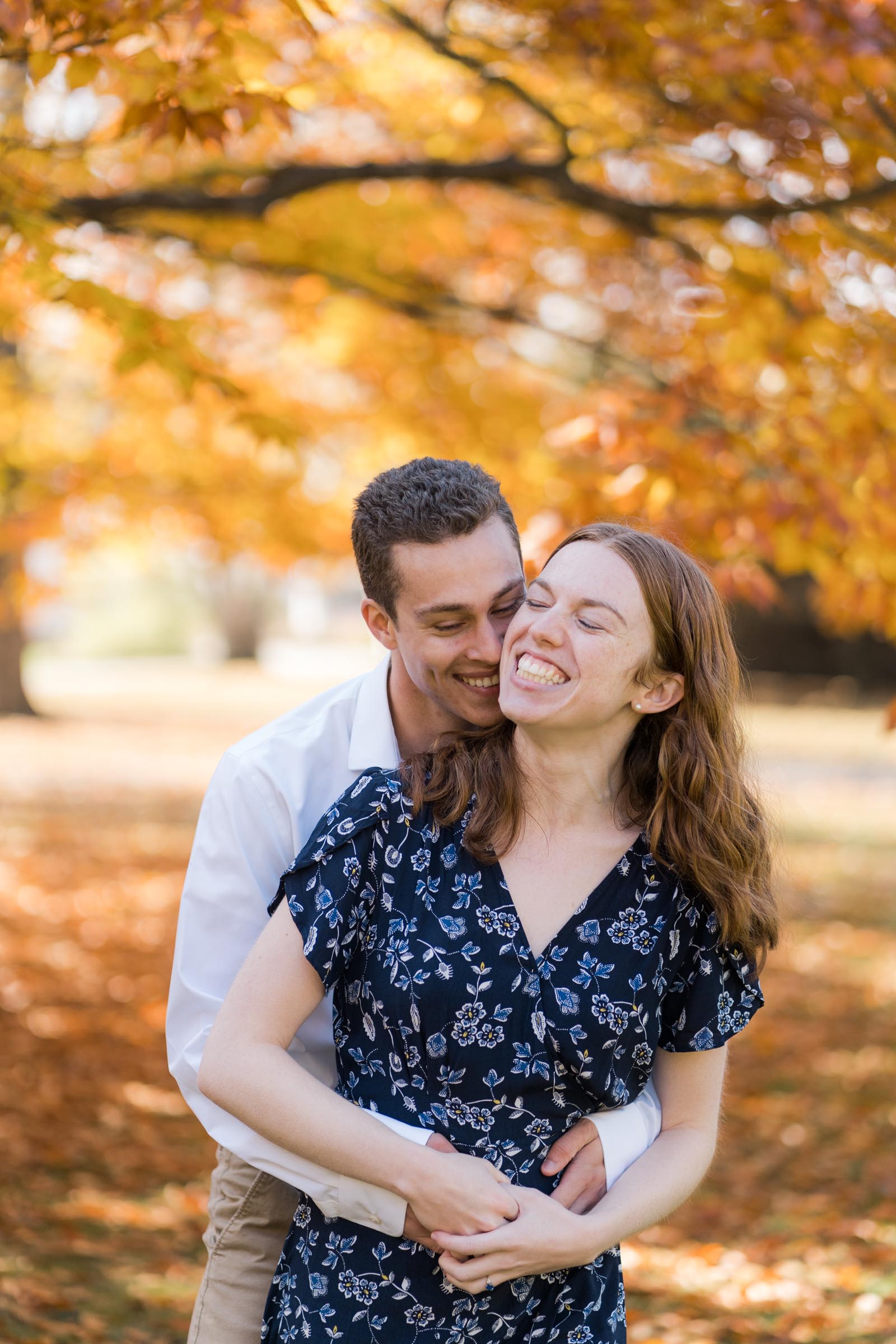 We finished their session at Faulkner Park, where we could find shade as the sun became harsh. Here we shared joyful moments beside a brilliant tree bursting with autumn color. The tones of the tree at Faulkner Park were incredible. Each part of their engagement session offered something unique, and brought out more of their personalities and connection as an engaged couple.