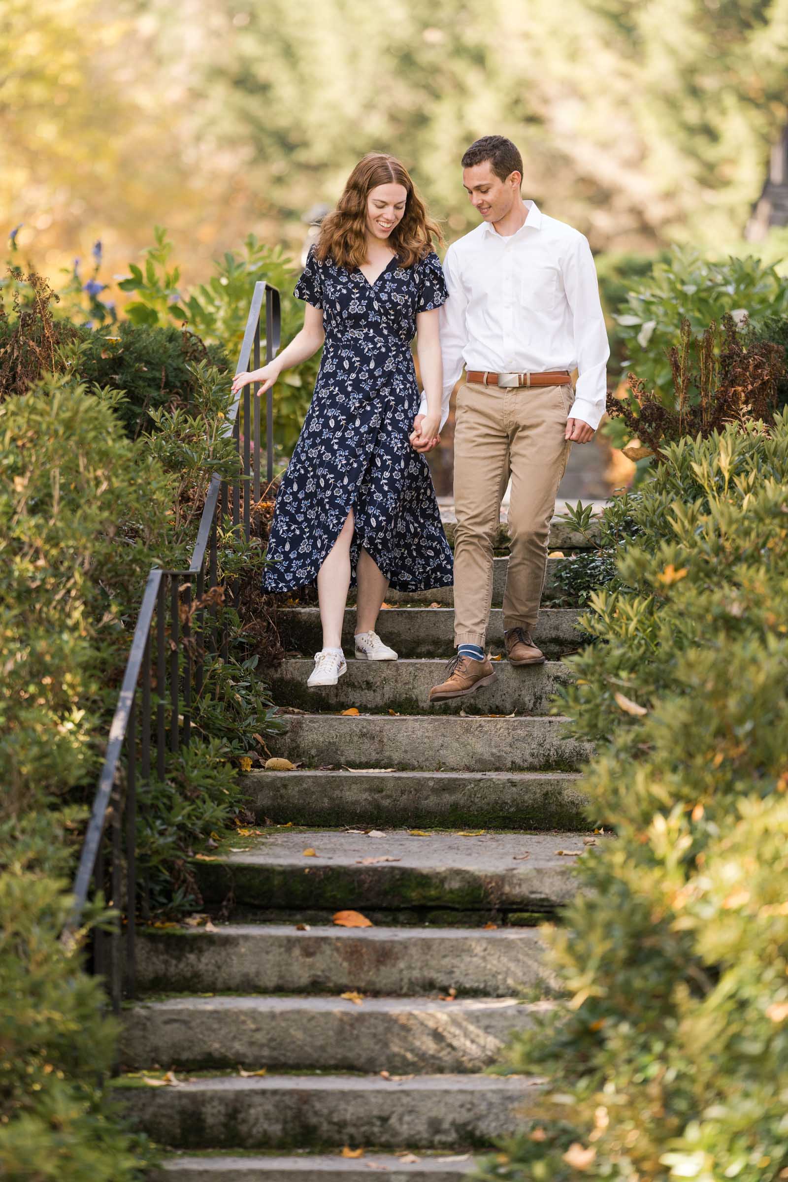 Next we crossed the street to Marsh-Billings-Rockefeller National Historic Park. While this spot is most beautiful in the spring and summer when the flowers are in full bloom, it’s stunning in fall, too! The path that winds into the woods is perfect. Wide and light-filled, the woodsy images are bright and joyful, and the autumn foliage added beautiful tones of orange and gold. The staircase that leads through the garden was a great spot for us to capture them in a natural way with lots of visual interest.